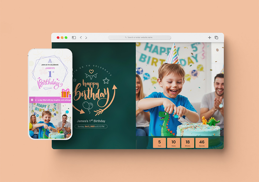 Your invitation will not just be an announcement. It becomes a digital keepsake of your baby’s first big celebration.